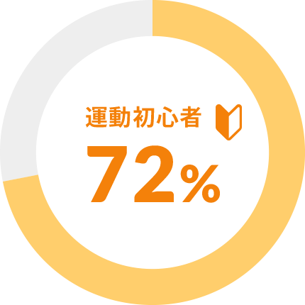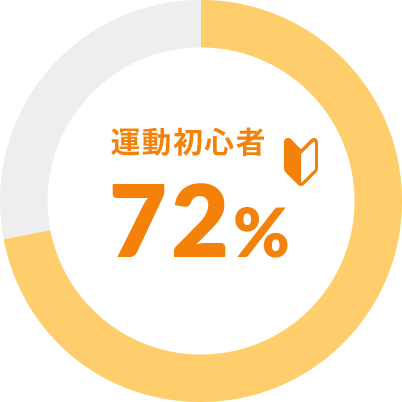 GOODSUNPLUSでトレーニングを行っているお客様は、運動初心者の方やジムに通ったことがない方が大半で、その割合は全体の72%を占めています。一方の28%は、継続的に運動している方やジムに通ったことがある運動経験者です。
